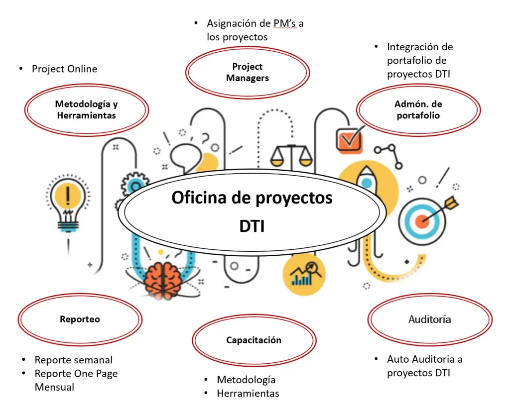 • Definir, implementar y asegurar el cumplimiento de la metodología de gestión de proyectos.